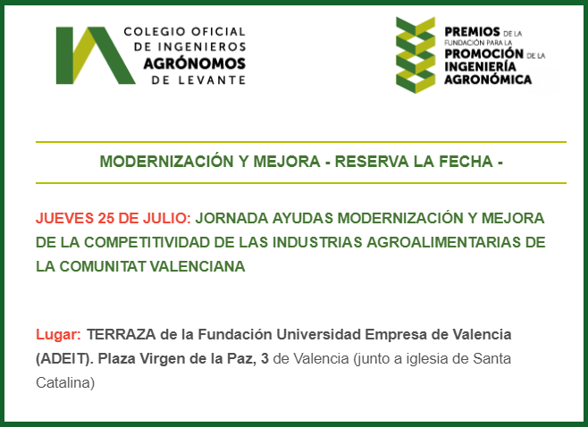 Jornada: Ayudas Modernización y Mejora de la Competitividad de las Industrias Agroalimentarias de la Comunitat Valenciana